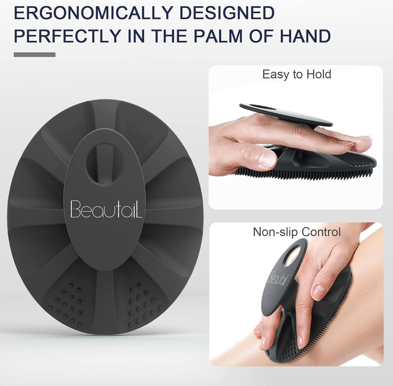 BEAUTAIL Silicone Body Scrubber Shower Bath Wash Brush with Gentle Exfoliating Scrub Cleansing Loofah and Hygienic Properties, 1 Pack, Black