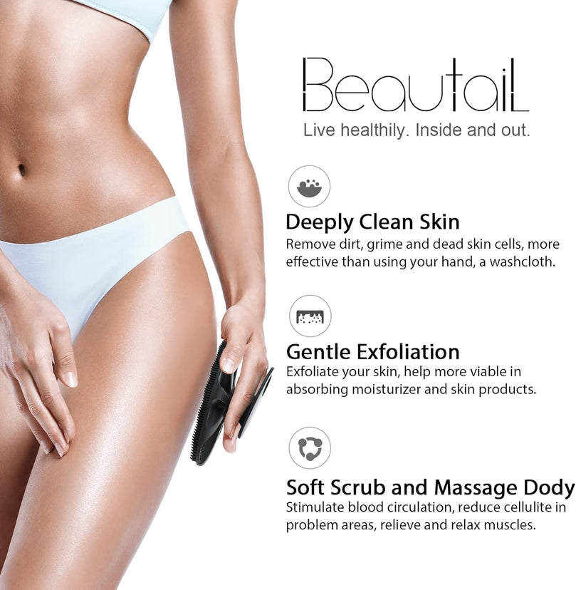 BEAUTAIL Silicone Body Scrubber Shower Bath Wash Brush Experience a safer and more hygienic shower with BEAUTAIL body scrubber. Made from food-grade non-porous silicone, it dries quickly and has antimicrobial...