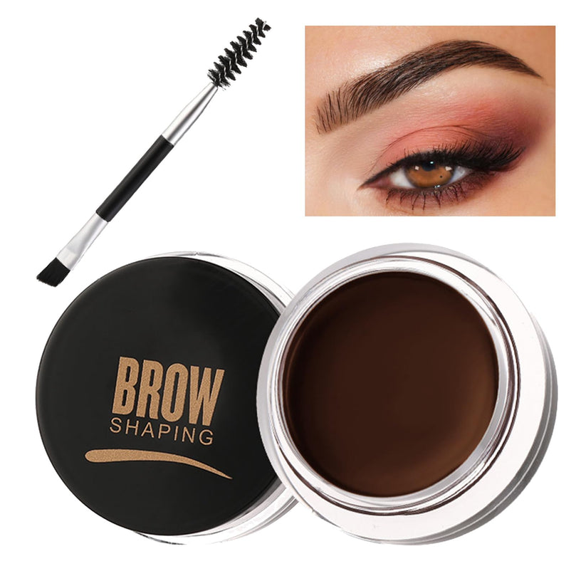 【With Brush】This eyebrow cream has a dual-ended brow brush to help keep it handy. Dip the angled brush into the brow gel and apply it to your brows and use the spiral brush on the other end to create the shape you want!