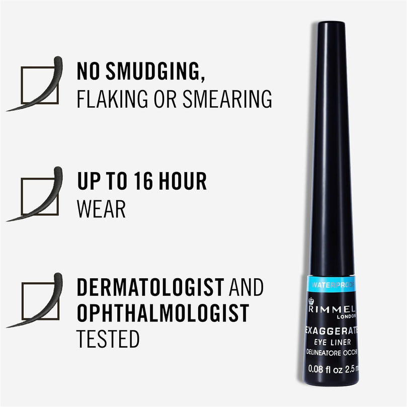 LONG-LASTING FORMULA: RIMMEL's Scandaleyes Exaggerate Eyeliner boasts a smudge-proof, flake-proof, smear-proof, and run-proof formula that lasts up to 16 hours. So, you can trust your eye makeup to stay put, no matter what the day or night brings.