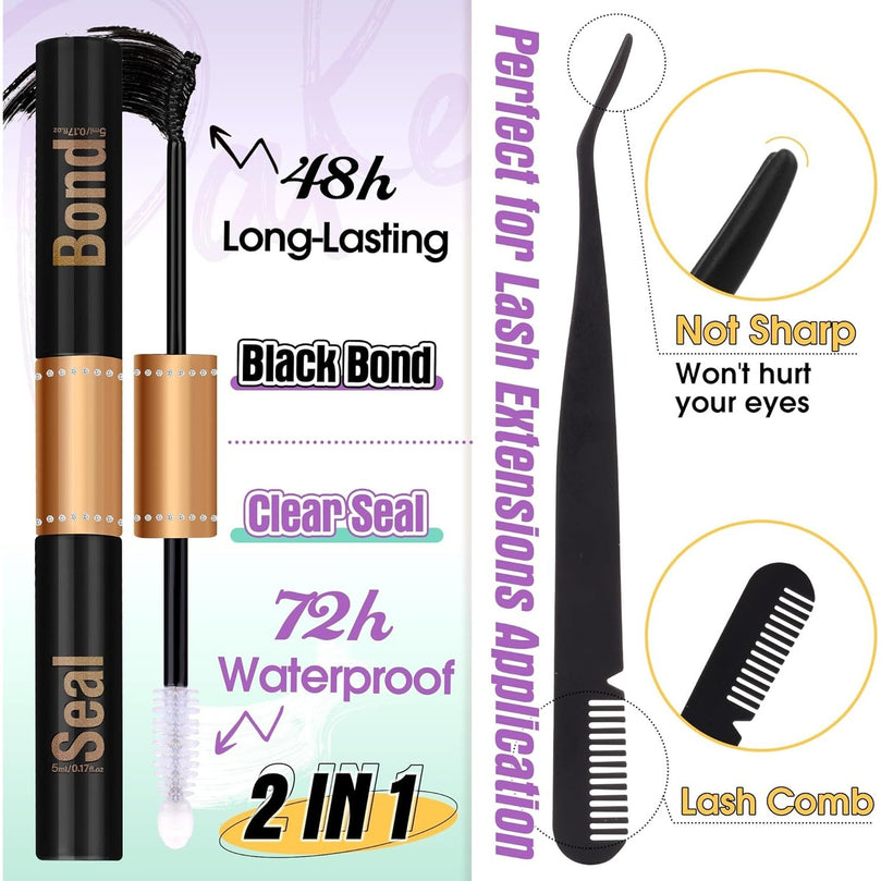 Beginner Friendly & Easy to Use: Whether you are a beginner or expert you can buy the DIY lash extension kit with confidence. Individual lash tweezers with comb are very easy to control, not sharp and won't hurt you. The 2 in 1 lash glue bond and seal is long lasting and waterproof. The eyelash clusters kit is a great deal, buy one get 4!