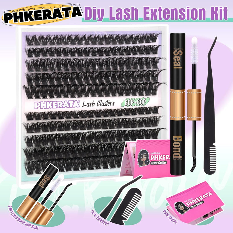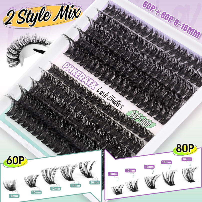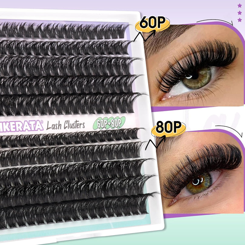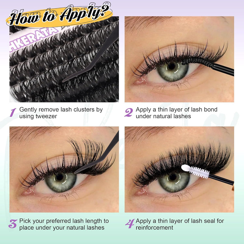 Premium Lash Extension Kit: Fluffy lash extension kit includes wispy 60P cluster lashes(95Pcs), fluffy 80P lash extensions(90Pcs), lash glue bond and seal *1, lash tweezers*1. You can choose any combination of these two individual lashes and enjoy an at home lash salon in just 5 minutes!