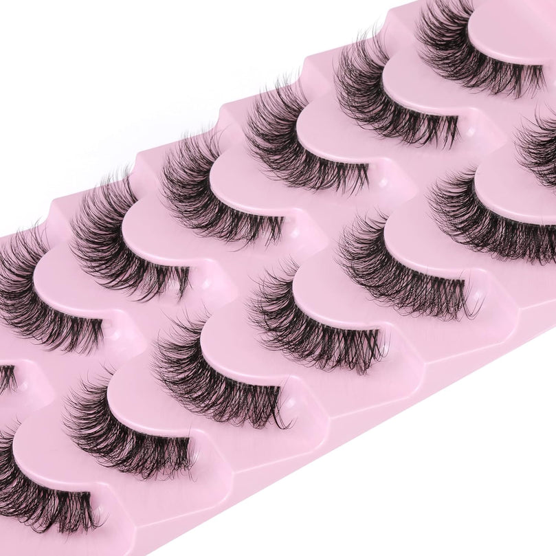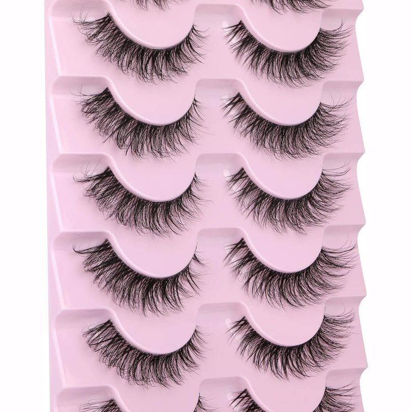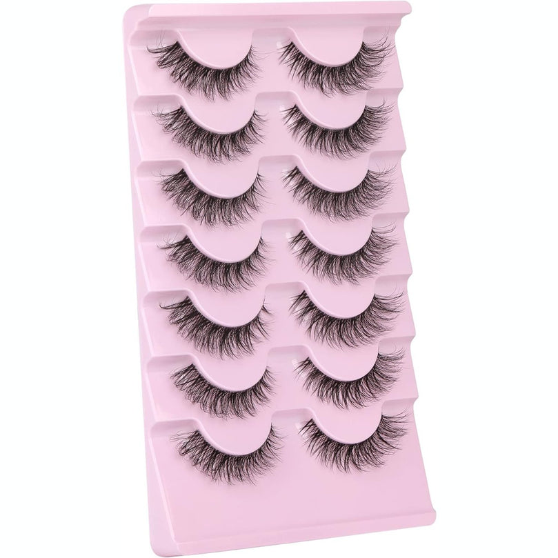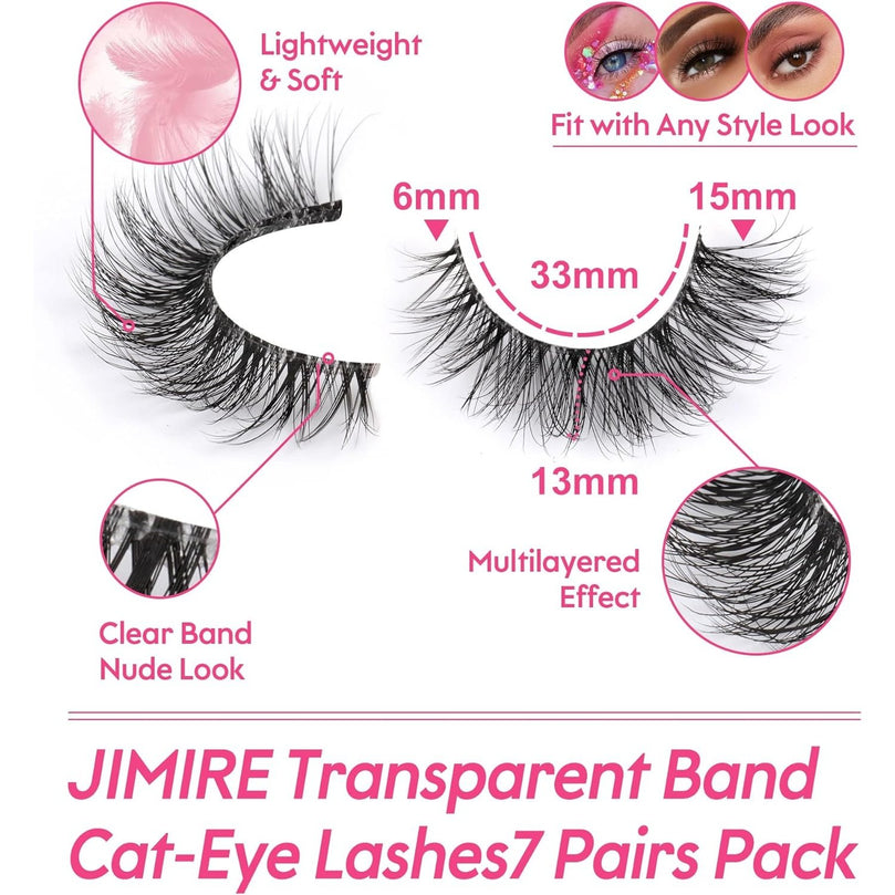 JIMIRE 3D Faux Mink Eyelashes with Transparent Band - Cat Eye Style, 15MM Medium Length, D Curl, 7 Pairs Pack - Natural Look & Fluffy Lashes for High-End Makeup Look