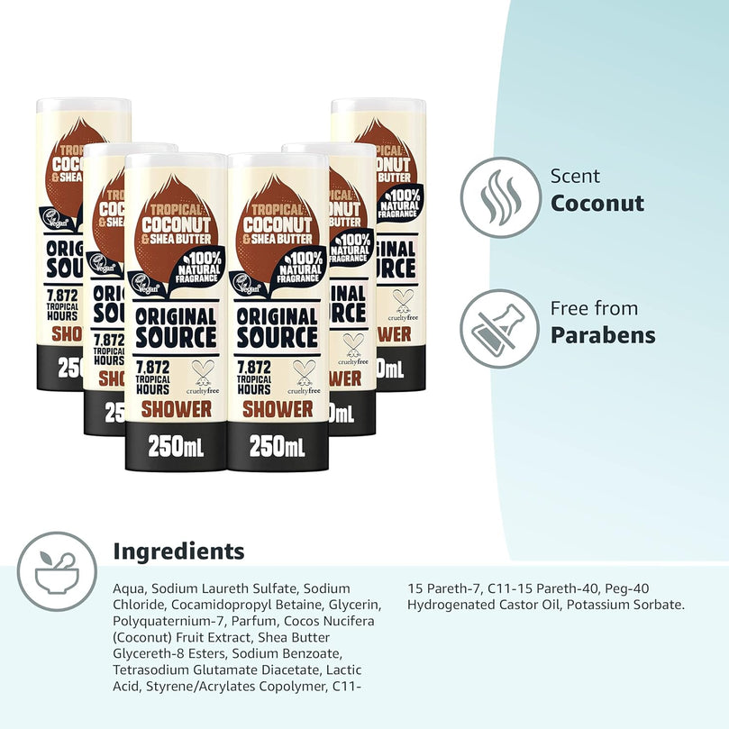 Original Source Coconut & Shea Butter Shower Gel, 6x250ml