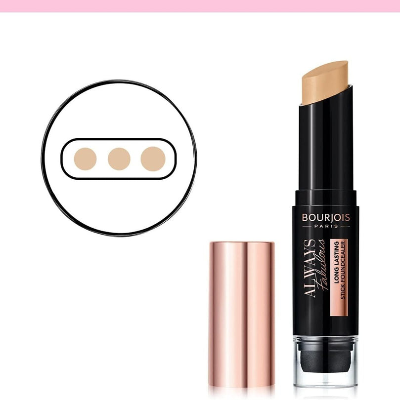 Say goodbye to the hassle of juggling multiple products and embrace the simplicity of the Bourjois Always Fabulous 24 Hour 2-in-1 Foundation and Concealer Stick with Blender. Elevate your beauty routine with this all-in-one solution.