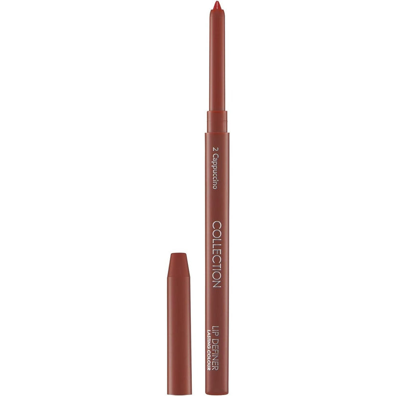 Discover the ultimate in lip definition with our Collection Cosmetics Retractable Lip Liner. This full-coverage lip definer pencil, available in the shade 'Cappuccino' and weighing 4.2g, offers an intense creamy texture packed with color for an amazing full coverage experience.