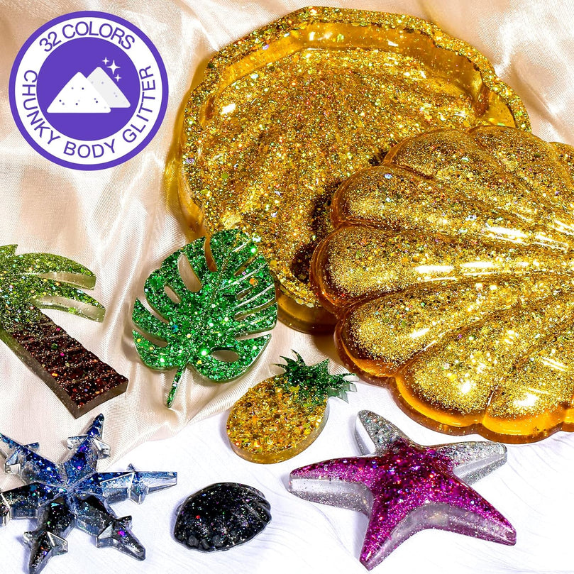 Fantastic Craft Glitter for Resin - 32 packs Reflective Resin Glitters Flakes Sparkle are quite enough quantity and colors for daily DIY project, fit for decorate cell phone’s case, invitation cards, shoes, ornaments, ceramic or any festival decoration, amazing craft glitter for wax melts & resin making and supplies