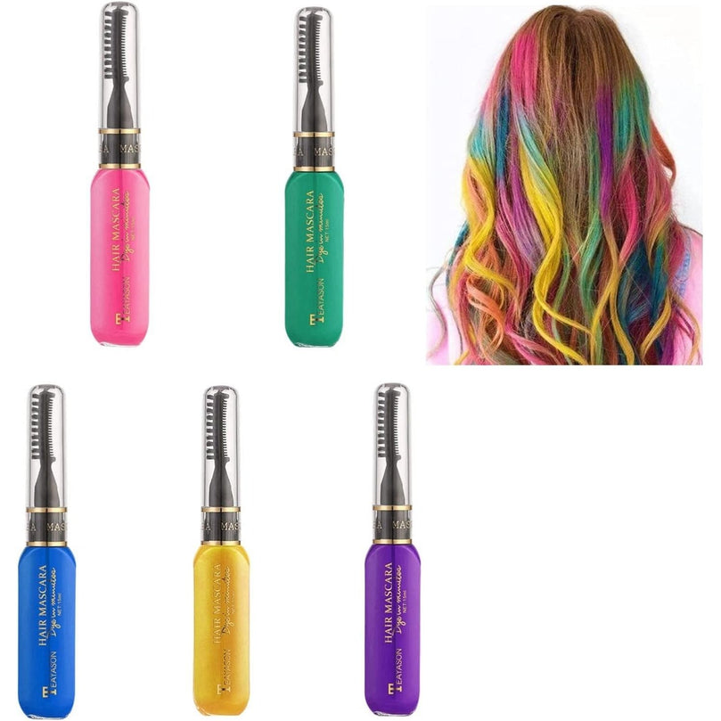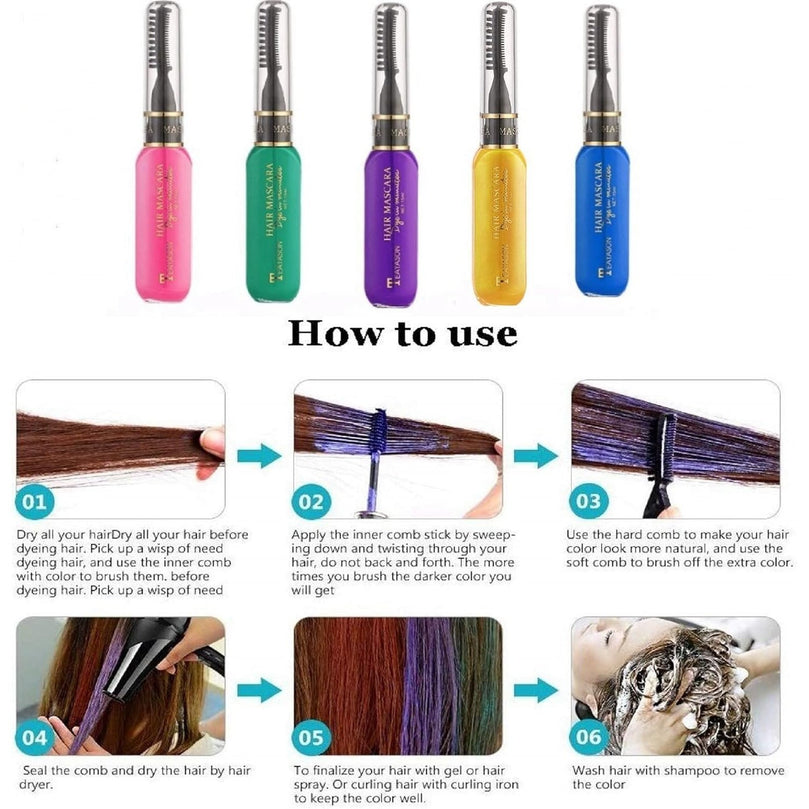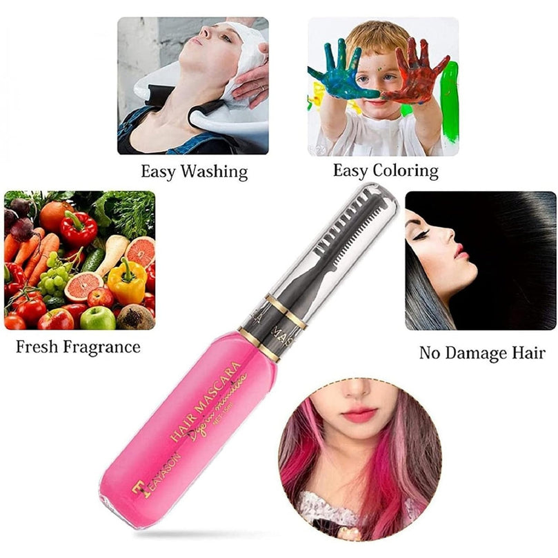【Instructions】The Hair Mascara is very convenient and easy to use,just open the Hair chalk,control the length by rotating the tail of the hair pen,then daub with chalk pens and blow dry hair. The temporary hair colour spray is quickly adds colors to your hair!