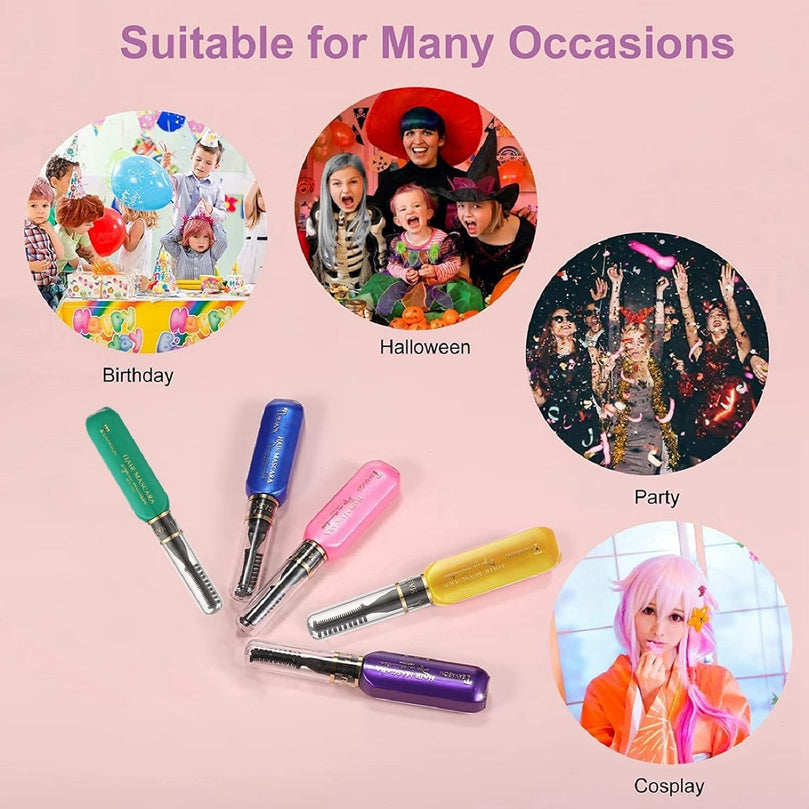 【Natural Temporary】Colours Hair Chalk Combs Comes in 5 beautiful colours including pink,gold,purple,blue,green. The wash out hair dye for kids is made out of natural ingredients & washes out with ordinary shampoo and water. The Temporary Hair Colour Dye is Suitable for KIDS.