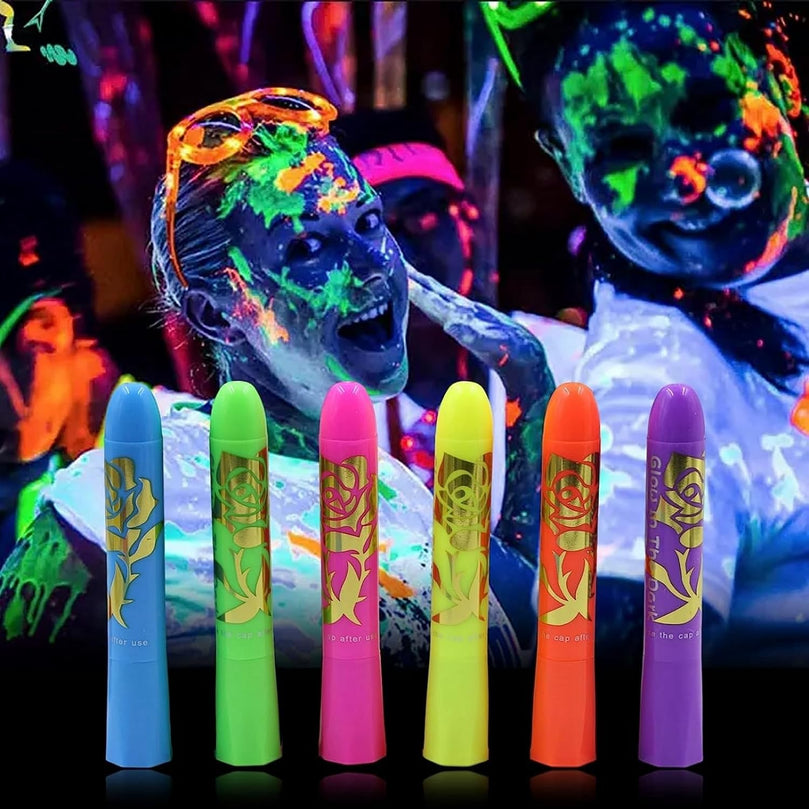 【High Quality Material】Our face painting crayons are made of safe water-based paint that won't crack.Body crayons won't peel off easily after drying.Glow in the dark body paint can be used on the face and hands to easily create cute makeup.Face paints kit is easy to color.Glow in dark face paint can control the amount, not easy to break.