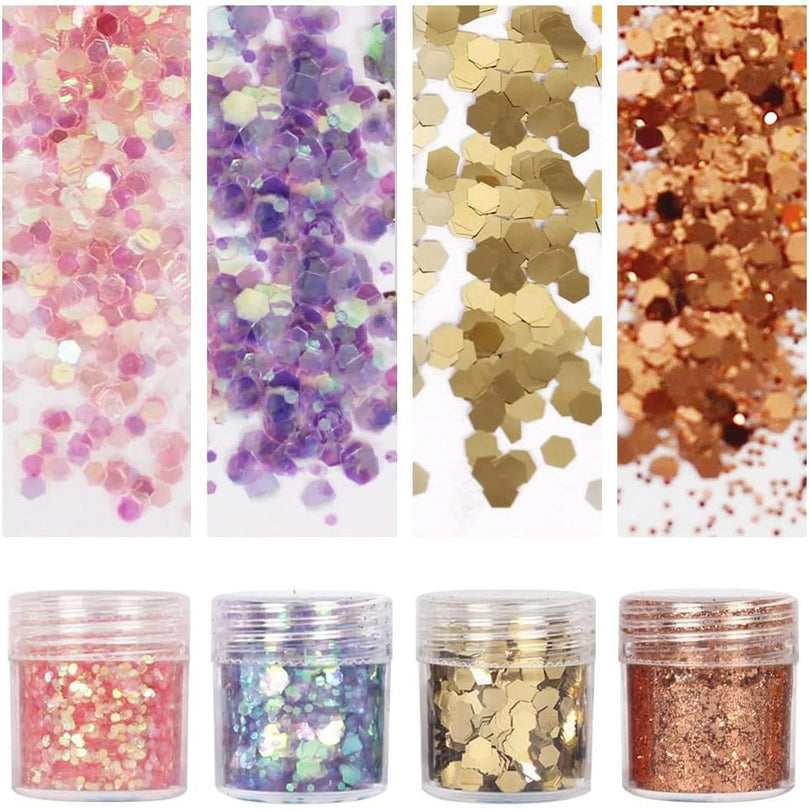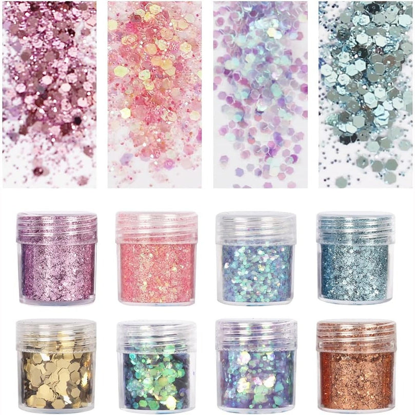 MULTIPLE USES - Those glitter are super CREATIVE for DIY lovers.You can use the chunky glitter to decorate any artcraft you like, cell phone's case, glasses,nail arts, eye makeup, body arts.