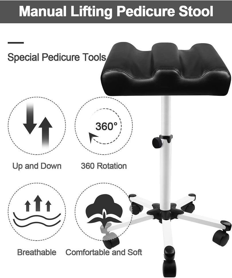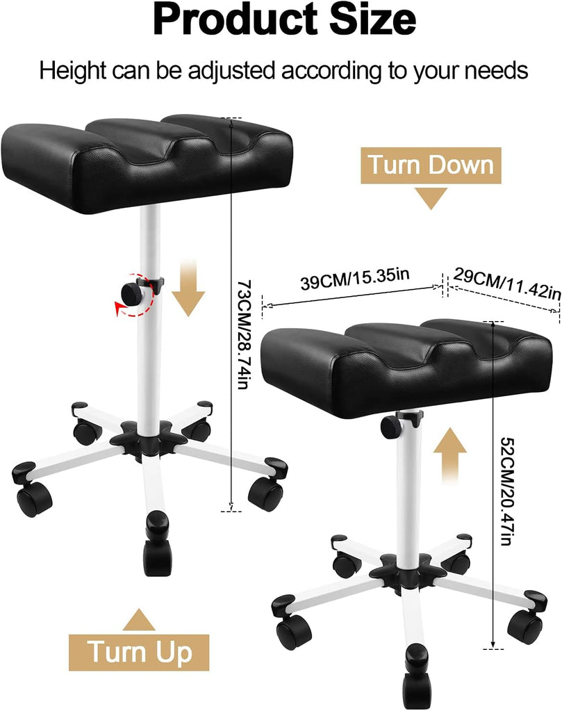 Smooth 360° Rotation Wheels: Equipped with five 360° rolling caster wheels, this pedicure footrest ensures smooth and flexible movement without damaging your floors. It’s perfect for use in rooms, offices, clinics, salons, and more.