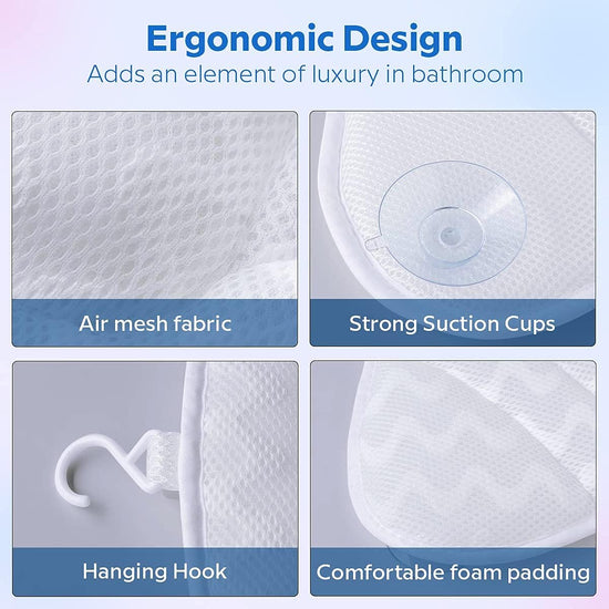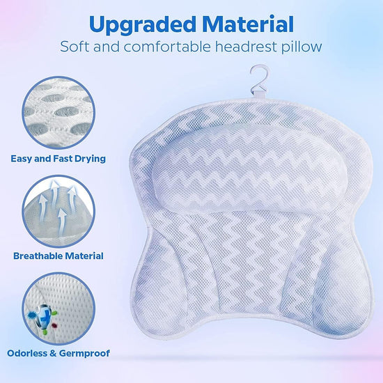 The bath pillow features 4D air mesh technology, with a 3D quilted mesh fabric that is light, breathable, and provides proper ventilation. This ensures that you stay cool and comfortable throughout your bath, just like you would with a bed cushion.
