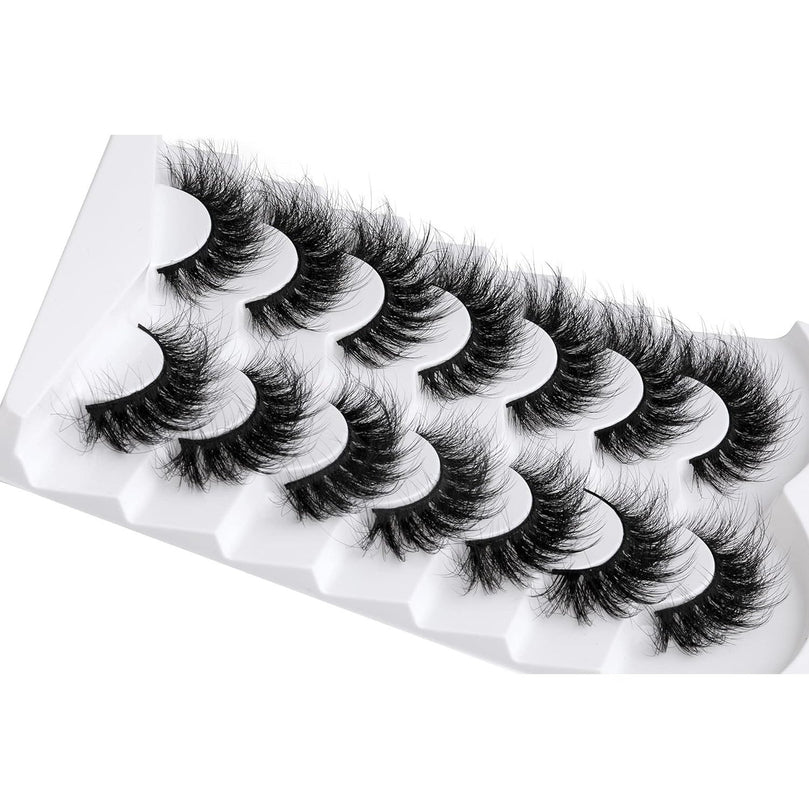 Alicrown Seductive Cat Eye Style False Eyelashes: Lightweight, 8D Fluffy, 100% Handmade, Reusable Synthetic Fiber Lashes, Cruelty Free, Set of 7 Pairs, Easy to Apply