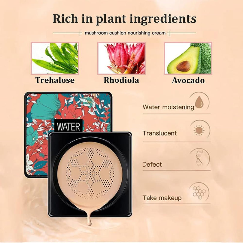 Achieve a flawless and natural-looking complexion with AONAT Mushroom Head Air Cushion Foundation BB Cream. This multi-functional product acts as a moisturizer, concealer, and makeup base, providing you with a complete makeup solution in one convenient package.