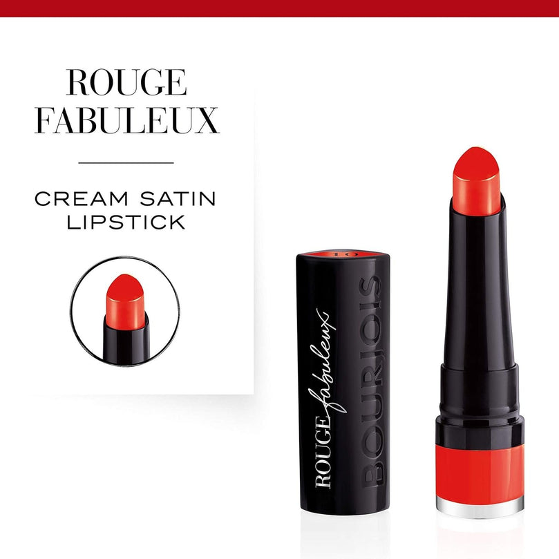 Unlike any other lipstick, the Bourjois Fabulous Rouge Bullet Lipstick in 010 Scarlet it be delivers a stunning satin finish that adds a touch of elegance to your look. It is the perfect balance between a matte and glossy finish, offering a sophisticated sheen that complements any outfit.