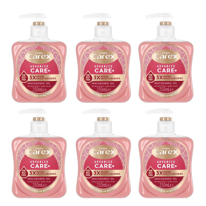 With this bulk buy pack of 6 x 250ml bottles, you'll have enough hand wash for the whole family. Keep your kitchen and bathroom stocked with this essential product. Order now and experience the benefits of Carex Advanced Care Macadamia Oil Antibacterial Hand Wash.