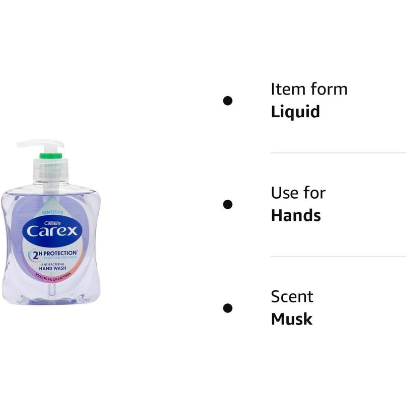 Experience the ultimate in hand hygiene with Carex Dermacare Sensitive Antibacterial Hand Wash. This gentle and effective liquid hand soap is specially formulated for sensitive skin, making it perfect for daily use. With natural moisturisers, it leaves your hands feeling soft and smooth while removing dirt and germs.