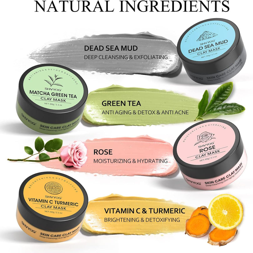 Get ready to pamper your skin with this amazing clay mask kit! Perfect for all skin types, including oily, sensitive, combination, normal, and acne-prone skin, this kit includes four different masks: VC Turmeric Face Mask, Green Tea Face Mask, Dead Sea Mud Mask, and Rose Clay Mask. Each bottle contains 60g of product, for a total of 240g in this kit. Not only is this kit a great value for your purchase, but it also comes in a beautiful packaging, making it a perfect gift for yourself or your loved ones.