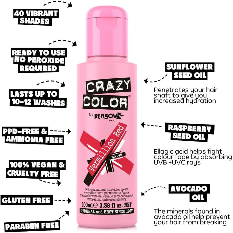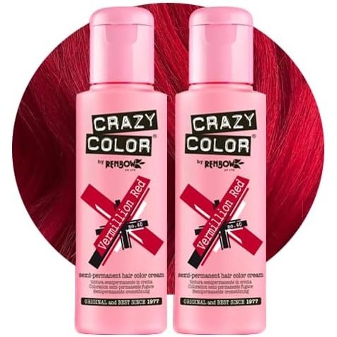 CRAZY COLOUR: The highly pigmented Vermillion Red hair dye deposits an intense colour gently. Packed full of oils, our formula conditions as it delivers a Scarlett red colour.