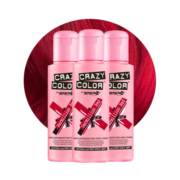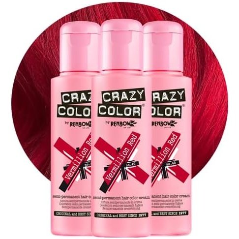 CRAZY COLOUR: The highly pigmented Vermillion Red hair dye deposits an intense colour gently. Packed full of oils, our formula conditions as it delivers a Scarlett red colour.