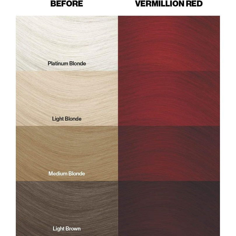 MADE IN UK: Our Vermillion Red formulas are made in the UK. Our semi-permanent shade promotes gentle hair colouring on bleached, pre-lightened and natural hair.