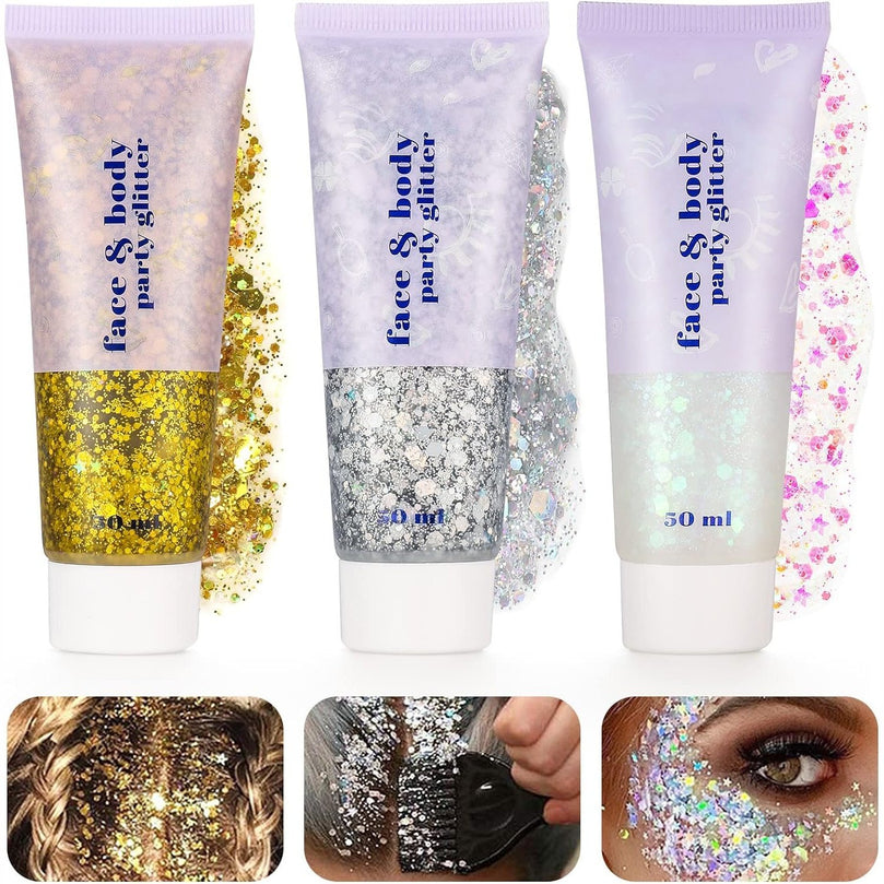Package Content: You will receive 3pcs body glitter gel with different colors, gold, silver and white, sparkle and beautiful, can make you more charming and outstanding.