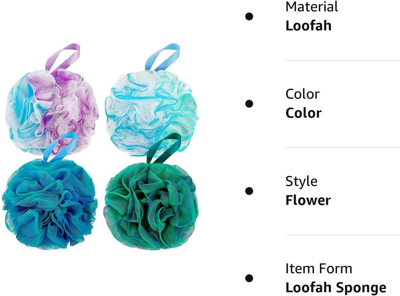 Share the love with our family 4-pack. Each set comes with four colorful bath sponges, perfect for the whole family. Treat yourself and your loved ones to a spa-like experience in the comfort of your own home.