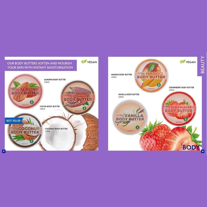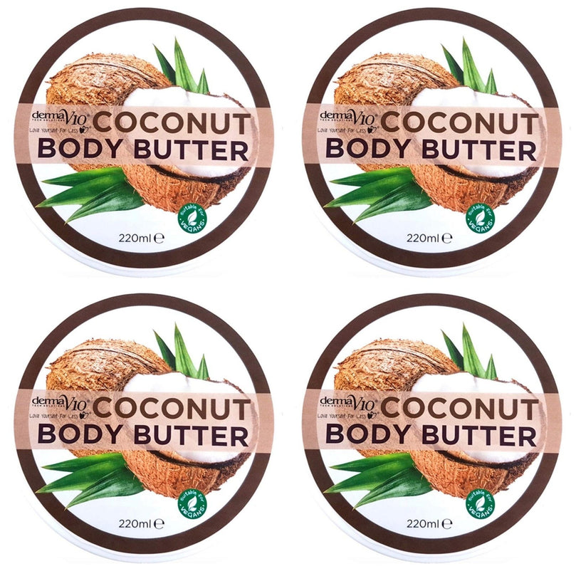 Introducing the Derma V10 Body Butter Moisturising Cream, now available in a convenient 4 pack with a refreshing coconut scent. This vegan-friendly cream is perfect for those looking for a natural and ethical skincare option.