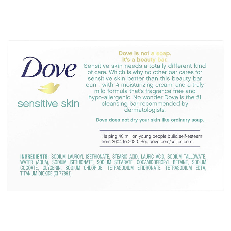 Introducing the Dove Bar Soap for Sensitive Skin, the perfect solution for those with delicate skin. This pack of 8 bar soaps is a must-have for anyone looking for a gentle and effective cleansing experience. Each bar contains 3.15 oz of product, making it easy to use and perfect for travel.