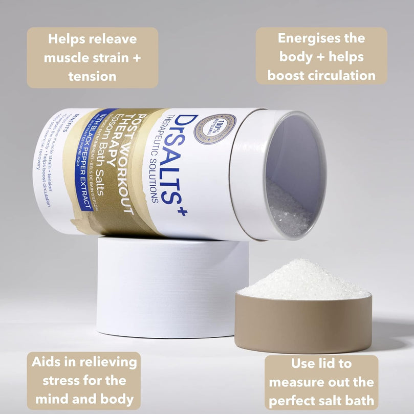 Rejuvenating and therapeutic, these bath salts contain Epsom salts to soothe and replenish minerals in your body. The refreshing blend of Black Pepper extract, Lavender, and Fruit Oils will leave you feeling relaxed and nourished. For the ultimate post-workout experience, pair these bath salts with other Dr Salts+ products, such as the Post Workout Therapy Shower Gel with Black Pepper extract.