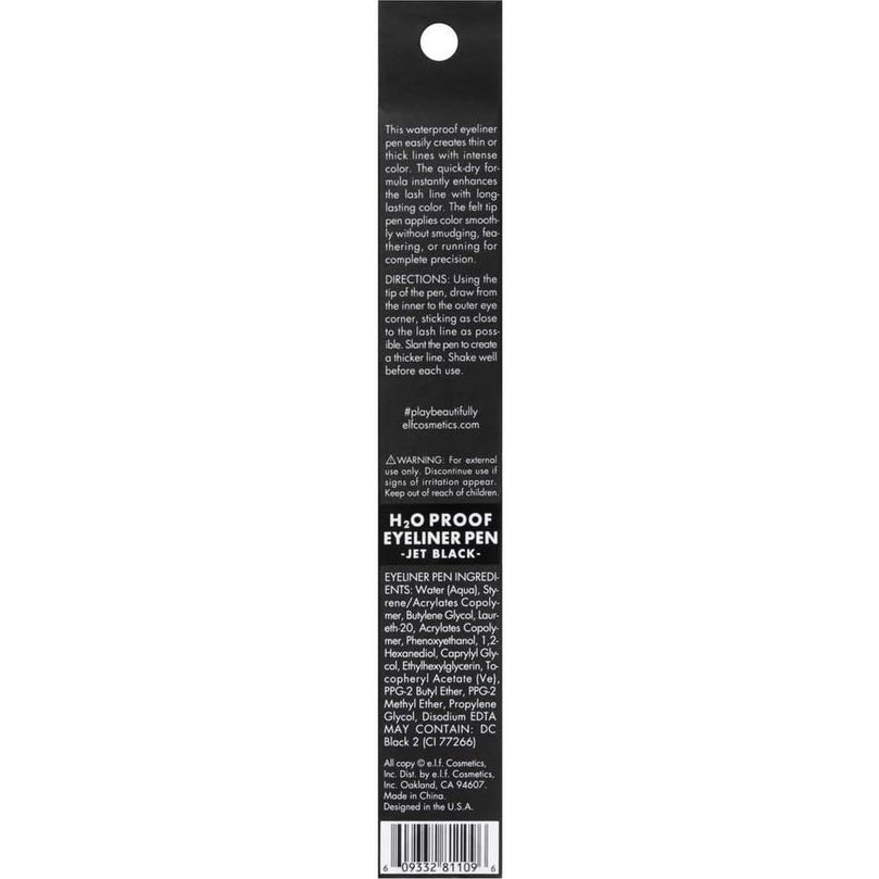e.l.f. Jet Black Eyeliner Pen with Vitamin E, Waterproof and Smudge-Proof, 0.02 Fl Oz (0.7mL)