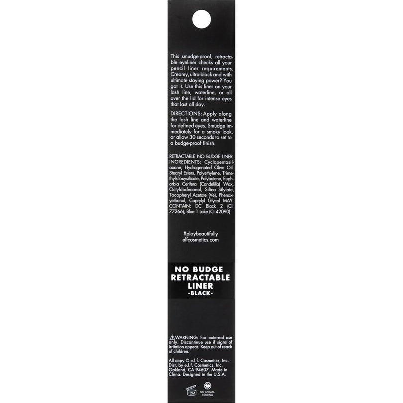 ULTIMATE EYE PENCIL: The e.l.f. No Budge Retractable Eyeliner is a waterproof, retractable eyeliner that checks all your pencil liner requirements.