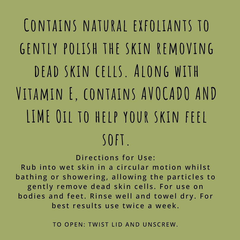 ABOUT THE PRODUCT: To open twist lid and unscrew. Reseal after each use. 200g Elysium Spa Elysium Spa Sea Salt Body Scrub enriched with Avocado & Lime