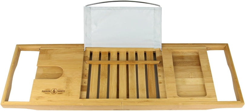 Upgrade your bath time routine with the Extendable Bamboo Bath Caddy & Tray from Maison & White.