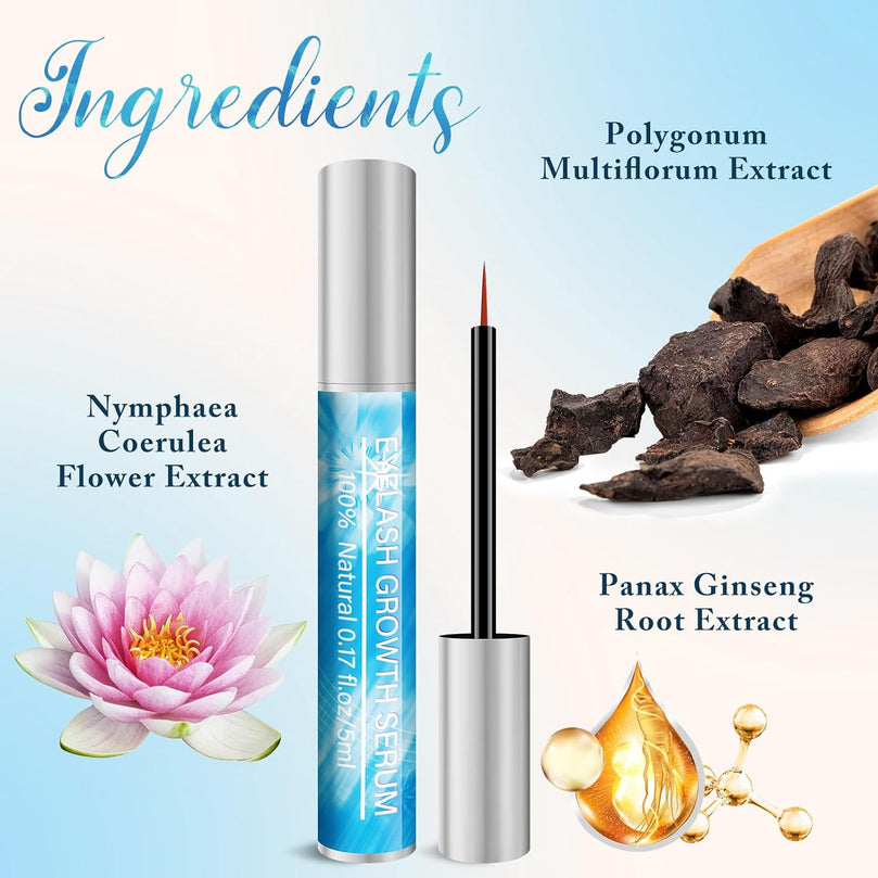 【UPGRADED EYELASH GROWTH SERUM】: Contains 5ML serum. Everything in our eyelash enhancer serum is hypoallergenic, non-irritating, clinically tested, allergy tested & dermatologist tested.Safe for all skin types. Safe for contact lens wearers.