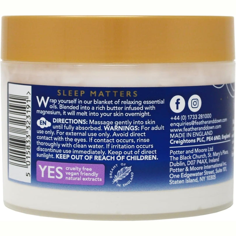 Introducing our Feather & Down Magnesium Soothing Sleep Butter, the perfect addition to your bedtime routine. This luxurious butter is infused with magnesium, calming lavender, and chamomile essential oils to help you drift off into a peaceful slumber.