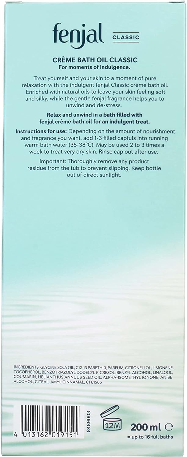 Experience the ultimate pampering with FENJAL Classic Luxury Creme Bath Oil. Treat yourself or someone special to this luxurious product, available now at our e-commerce store.