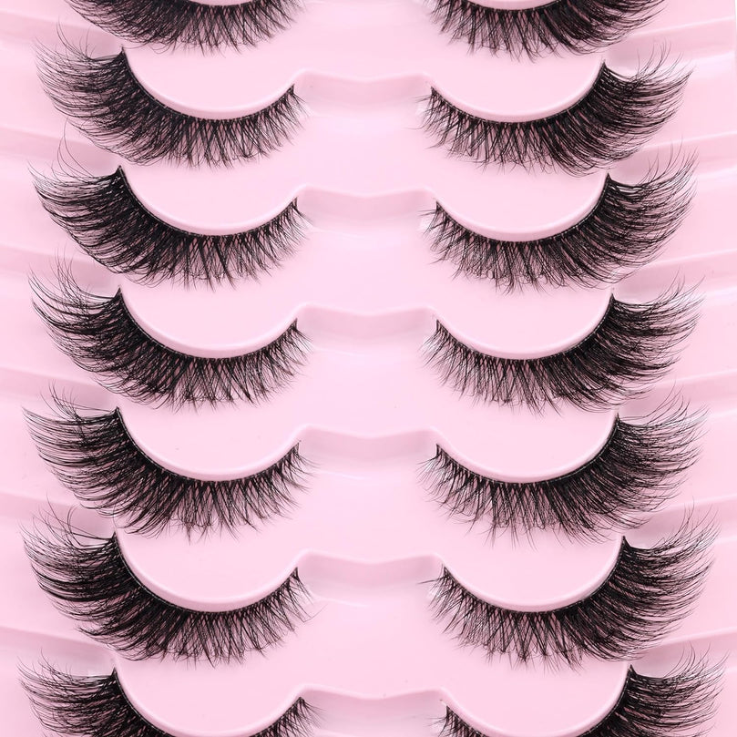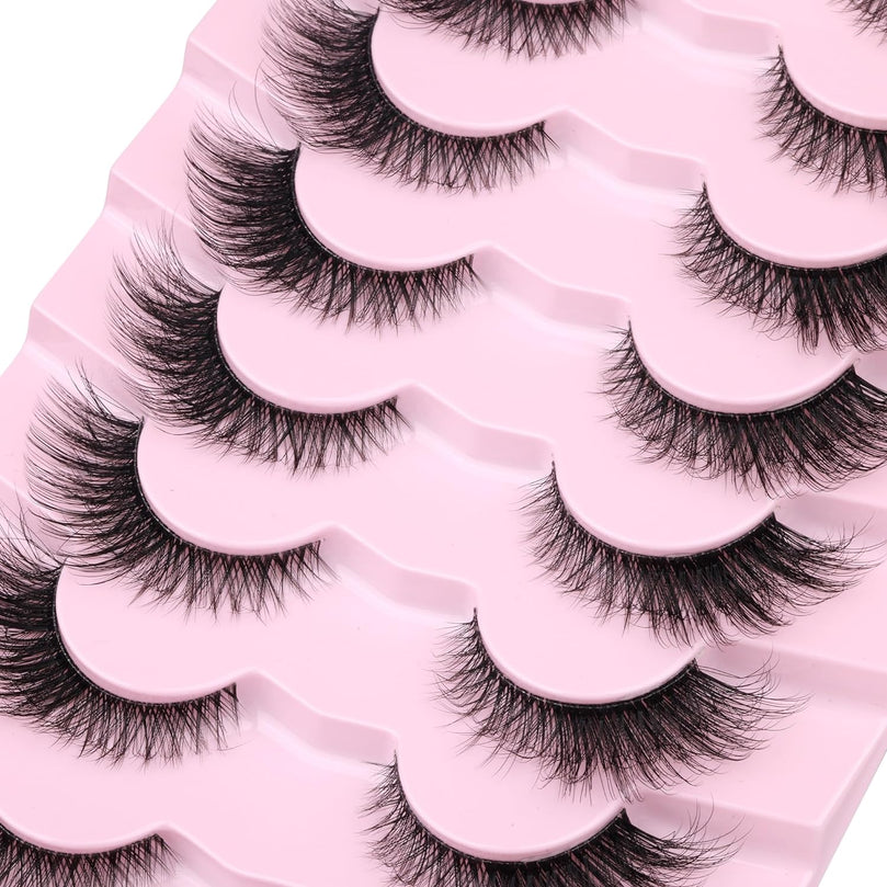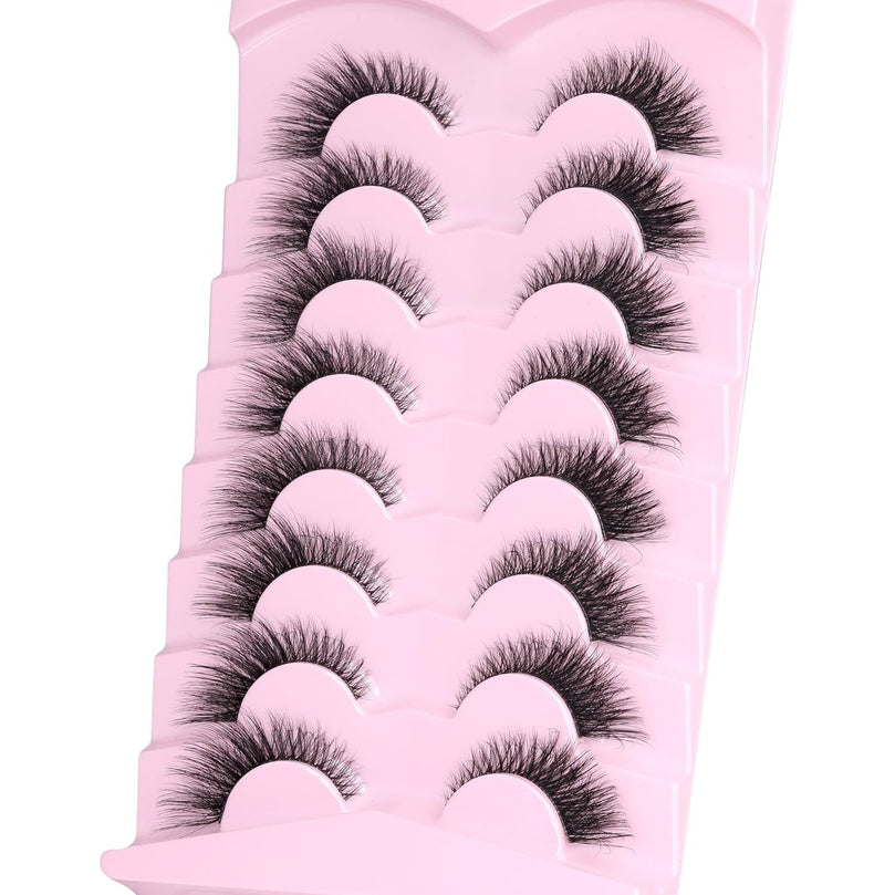 GVEFETIEE Premium Faux Mink Wispy Eyelashes with Ultra-Fine Clear Band, Natural Fox Eye Lashes, 8 Pairs Pack - Lightweight, Reusable, and Suitable for All Occasions