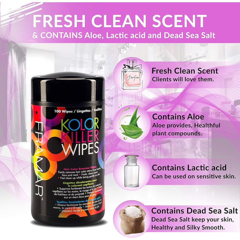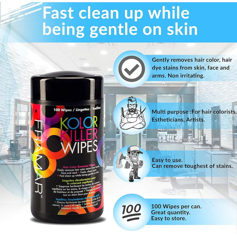 Effective – Gentle cleaning wipes easily remove hair color, temporary hair colour, or semi permanent hair dye stains from hands, arms, face and neck. This hair colour remover can remove even the toughest of stains on your client or yourself. Specially formulated, these hair dye remover wipes effectively and safely remove stains.
