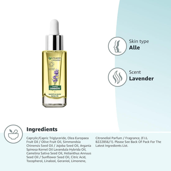 Get ready to achieve a healthy, smooth, and glowing complexion with Garnier Organic Soothing Lavandin Glow Facial Oil. Try it now and see the amazing results for yourself!