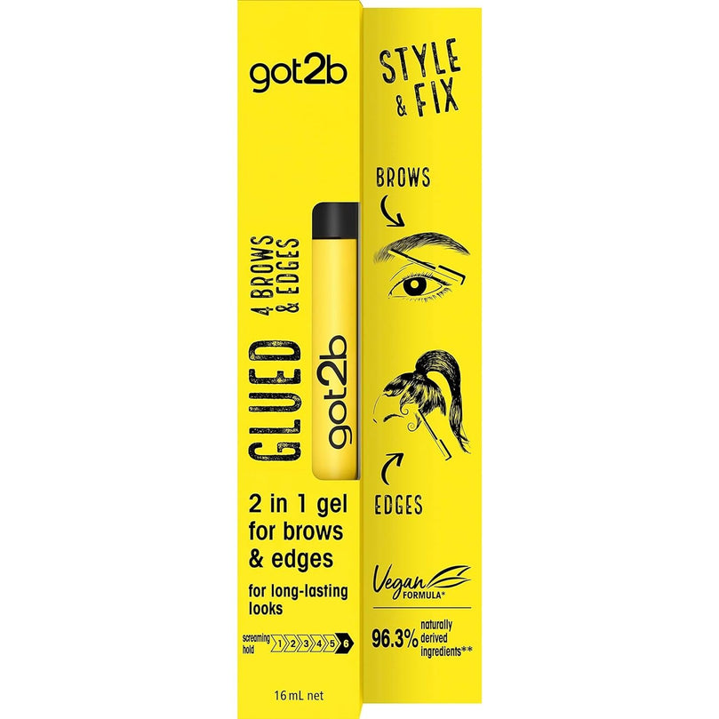 Introducing the got2b Glued for Brows & Edges 2 in 1 Wand Eyebrow Gel, the ultimate solution for perfectly styled brows and edges. This gel offers a super strong hold for up to 72 hours, ensuring your brows and edges stay in place all day long. Dermatologically tested and vegan, this gel is suitable for all skin types and is free from silicones and alcohol. It dries quickly without leaving any flakes or stickiness, giving you a clean and polished look. Say goodbye to white residue and hello to flawless brows and edges. The two-sided fibre brush allows for easy and precise application, making it perfect for achieving your desired look. Whether you prefer a natural or bold brow, this gel has got you covered. Celebrate your originality and elevate your brow game with got2b Glued for Brows & Edges 2 in 1 Wand Eyebrow Gel. Get yours now and experience long-lasting hold and effortless styling.