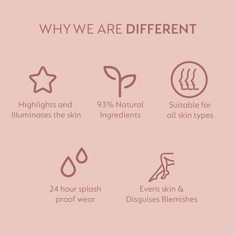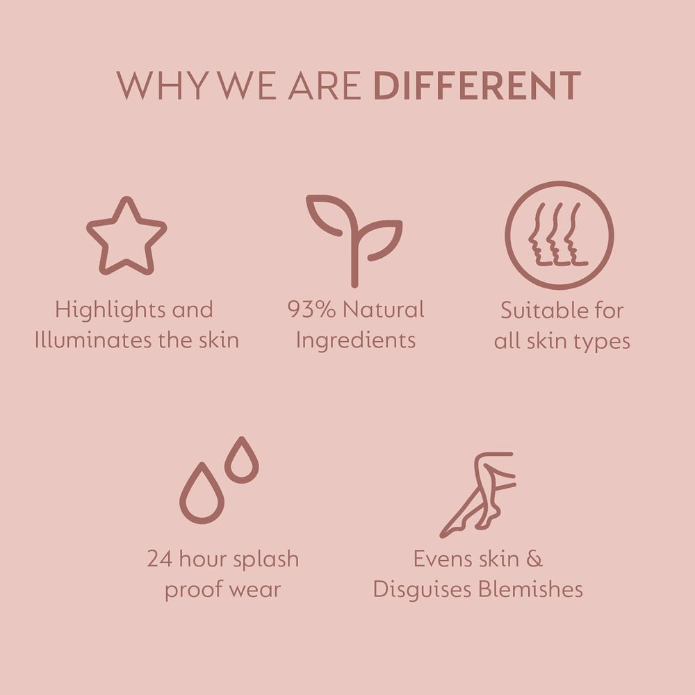 QUICK & EASY TO USE - A beautiful light reflective skin perfecting instant makeup for the face and body is easy to use. Simply take a tanning mitt or makeup brush and blend the product in circular motions over any area you want to cover for a streak-free and flawless finish. A splash-proof formula that can last up to 24 hours.