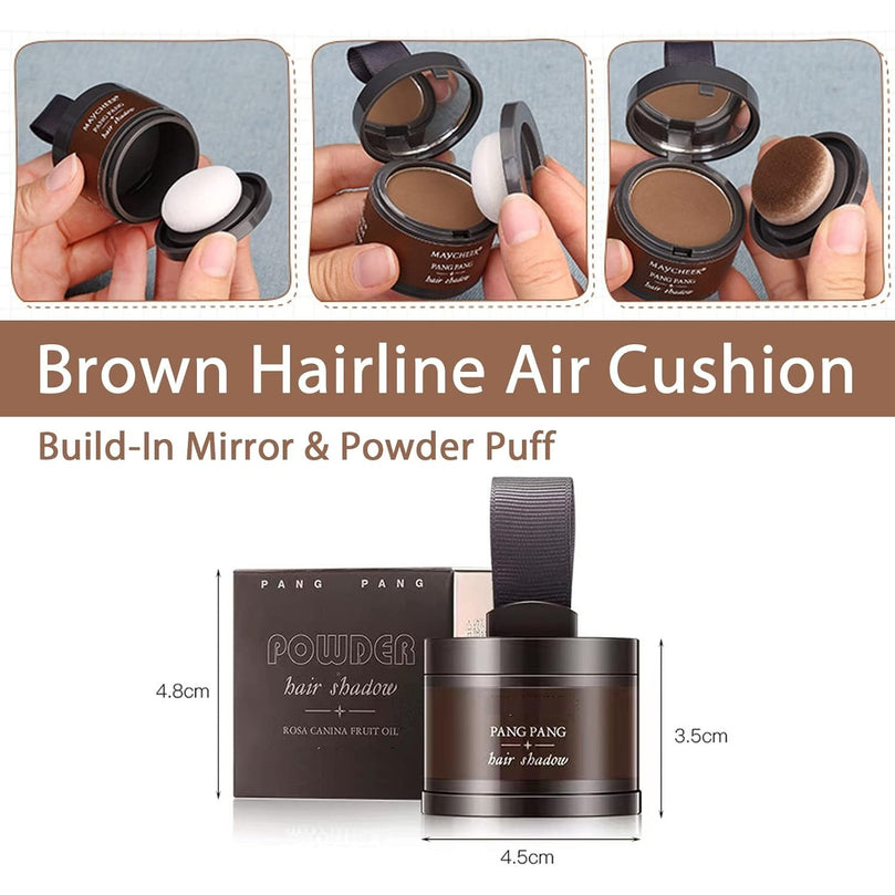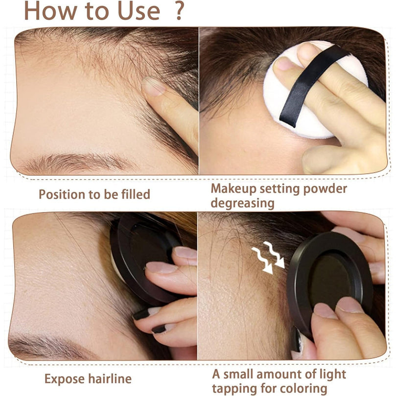 【Easy to Use 】Open the powder puff, dip in the hair tip right amount of hair powder, dip gently along the white hair line root, fill the color neat hairline.Or gently pat the powder from the edge of the hairline from light to dark.A small amount of repeated tapping until you get a perfect hairline.