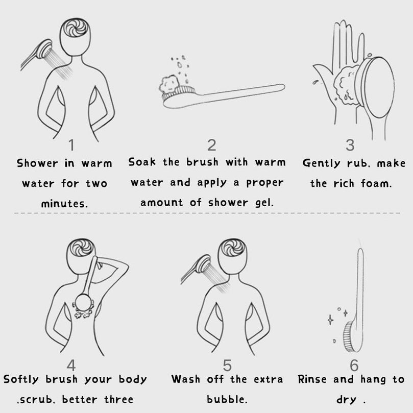Ithyes Dry Brushing Body Brush Shower Bath Brush Long Handle Gentle Back Skin Scrubber Exfoliate Massage Improve Blood Circulation Cellulite Treatment