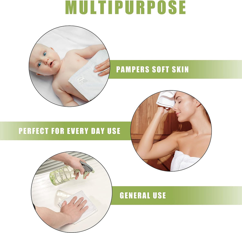 Ultra Soft Bamboo Baby Wash Cloths (Pack of 6) for Newborns - White