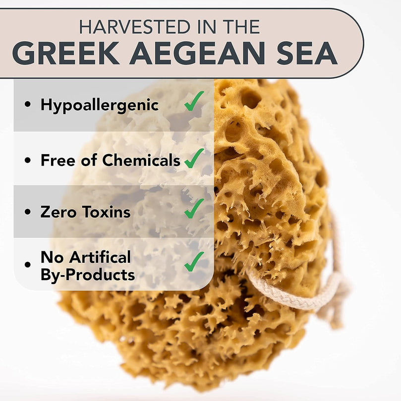 Not only is our sea sponge luxurious and effective, but it is also durable and hygienic. The enzymes in the sponge inhibit mold and bacteria growth, making it hypoallergenic and free of chemicals, artificial by-products, and toxins. Sustainably harvested from the Greek Aegean Sea, our sponge is 100% biodegradable.