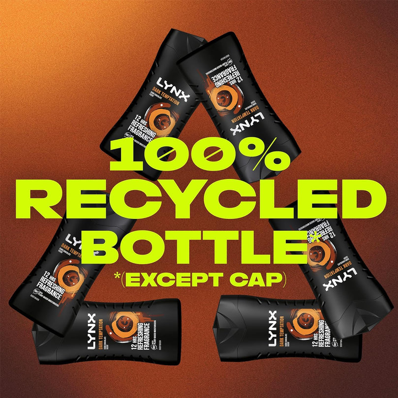 And the best part? The bottle is made from 100% recycled plastic, making it an environmentally friendly choice. So why wait? Try Lynx Dark Temptation Shower Gel today and indulge in 12 hours of irresistible smell.