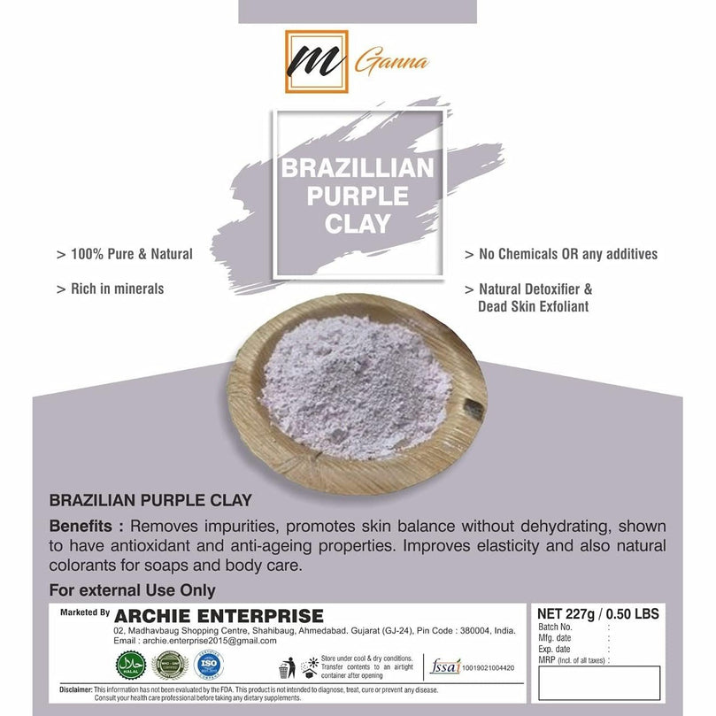 Introducing mGanna 100% Natural Brazilian Purple Clay Powder - the ultimate solution for anti-ageing and skin firming. This versatile product is perfect for making creams and soaps, making it a must-have for any beauty enthusiast.