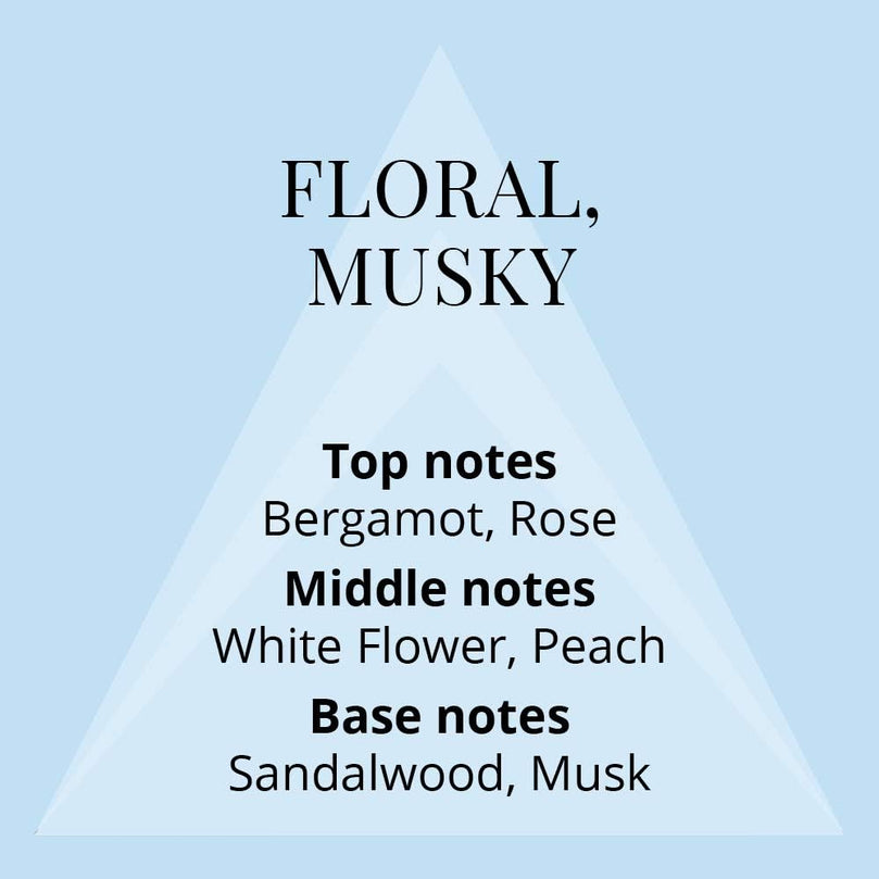 Soft, Earthy and Warm: This fragrance combines floral top notes of jasmine and rose petals with a blend of soft vanilla, rich sandalwood, hibiscus, and a base of warm musk.